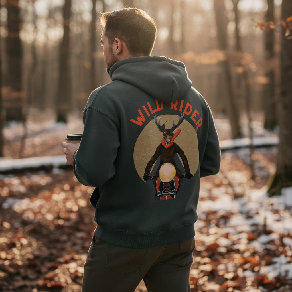Unsere nachhaltigen Hoodies verbinden gemütlichen Tragekomfort mit liebevollen Hirschmotiven und humorvollen Statements.